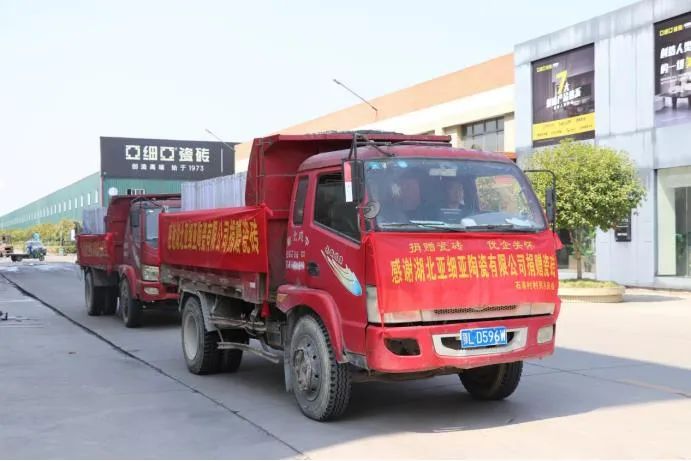 9月16日上午,2輛載滿共1300平米、價值約11萬元愛心瓷磚的卡車從亞青青草免费在线视频集團出發,送往通城縣雋水鎮石泉村,用於當地黨群服務中心裝修。