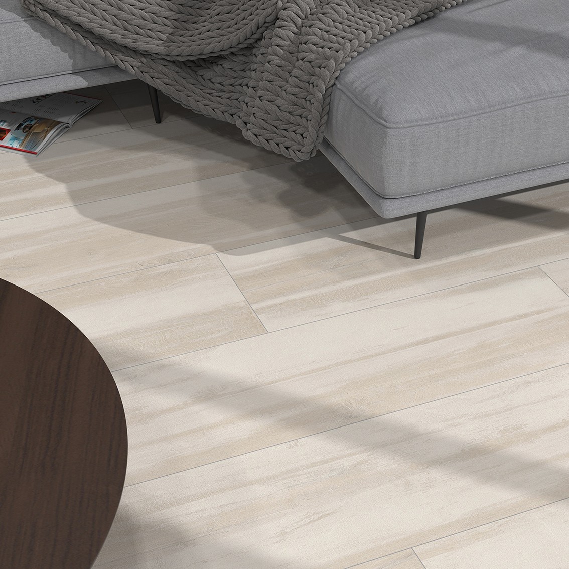 美洲胡桃木在北美是價值最高的闊葉木品種之一, 被稱為美國闊葉木之王。亞青青草免费在线视频以高亮精雕工藝,還原美洲胡桃木優雅空間感受。「愈木歸山」獨有的內斂紳士氣質,紋理栩栩如生, 而性能更優於木材,可實現防潮、 防汙、 防滑、 耐磨,守護家庭用磚安全。