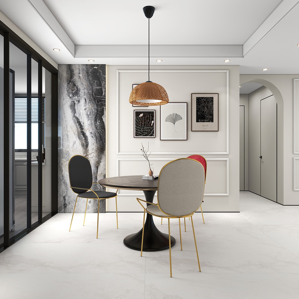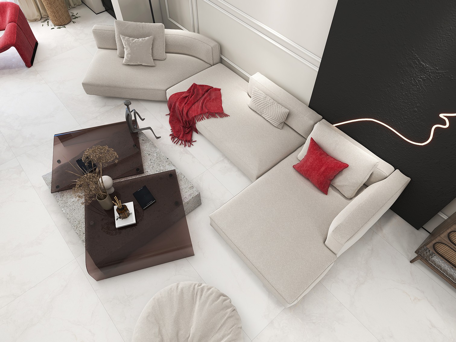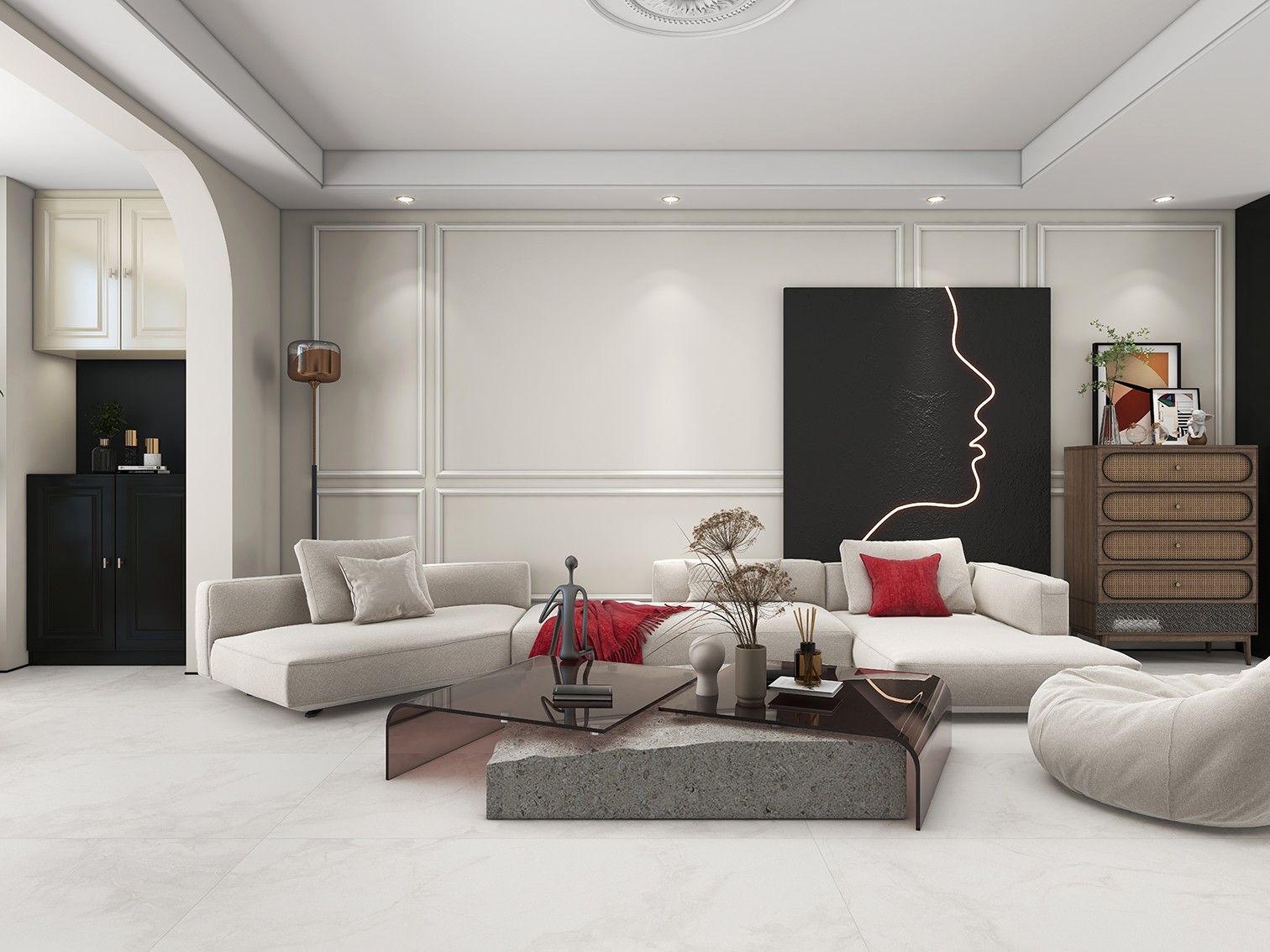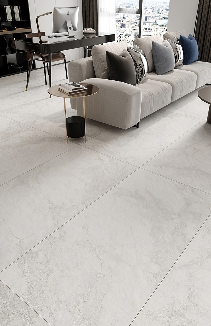 泰山為五嶽之首,被譽為“五嶽獨尊”,「雲卷」以泰山“雲瀑”為設計靈感,形象地凝練雲海在泰山的九天銀河傾瀉而下的動態之美,將其投射瓷磚紋理中,以雲卷雲舒的形態,營造出極富流動感的形象在瓷磚紋理上。天寬憑雲舒,宇闊任雲卷,帶來輕盈純淨、自由隨性的空間感受。