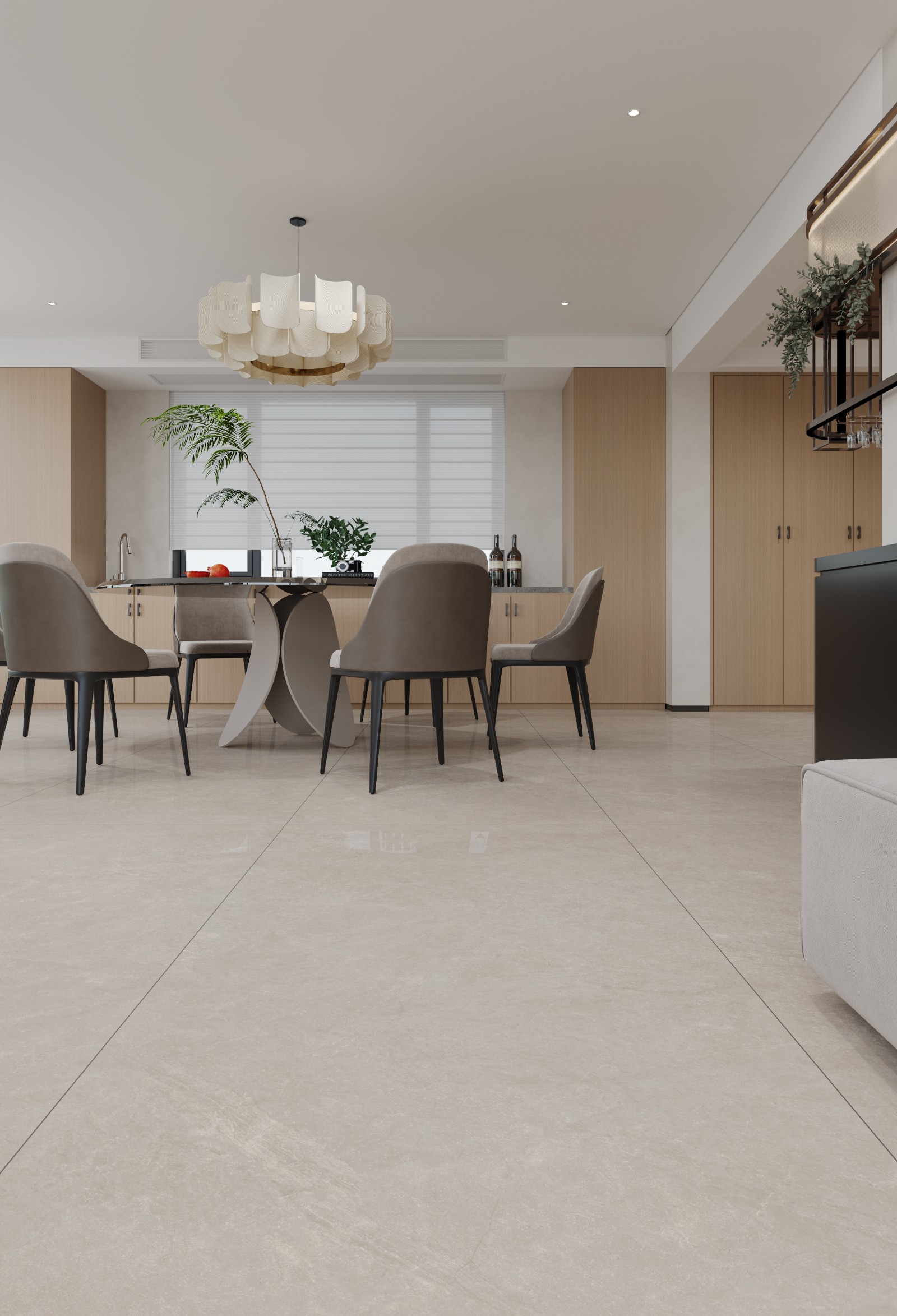 優雅浪漫的卡地亞米,將頂級奢石的獨特肌理和柔潤光感融入到瓷磚設計中,在米黃基底上